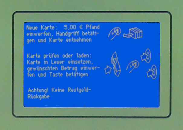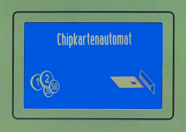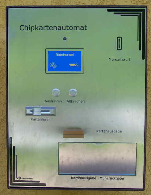 Der Chipkartenautomat dient zur vom Nutzer selbst veranlaßte Ausgabe, Kontrolle und Ladung von Chipkarten.